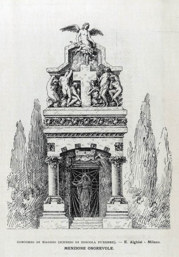 1910 - Concorso di maggio (schizzo di Edicola funebre), Torino, L'artista moderno, volume IX, n. 4, p. 71.