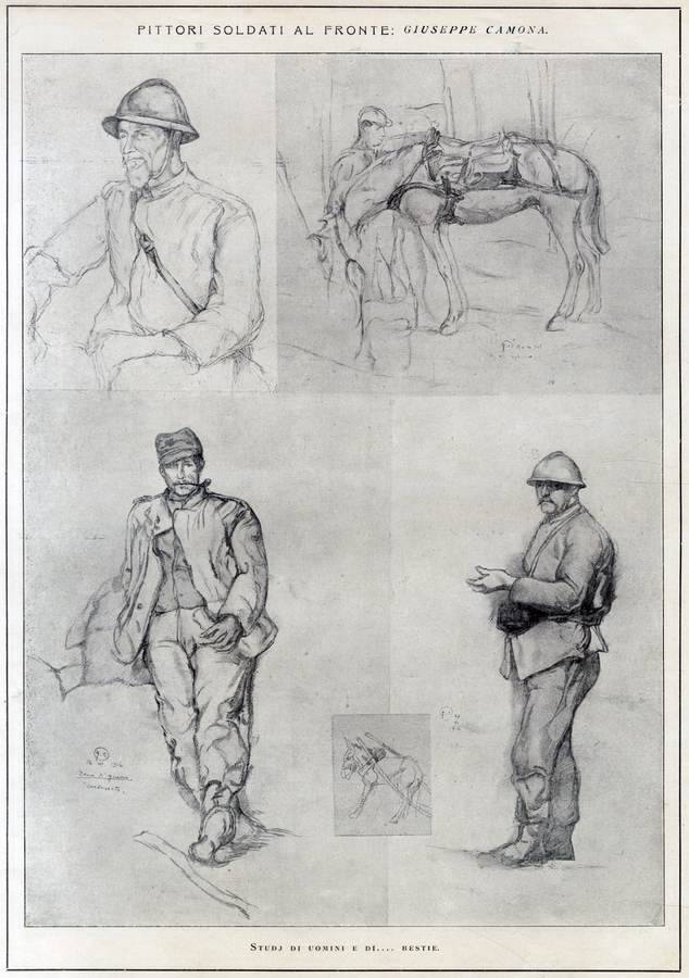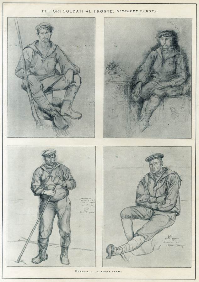 1916 - Pittori soldati al Fronte: Giuseppe Camona, Milano, L'Illustrazione Italiana, n. 49-50, 3-10 dicembre, 4 pp. f.t., ill.