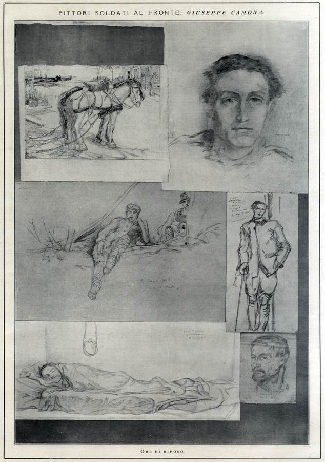 1916 - Pittori soldati al Fronte: Giuseppe Camona, Milano, L'Illustrazione Italiana, n. 52, 24 dicembre, pp. 499/502, ill.