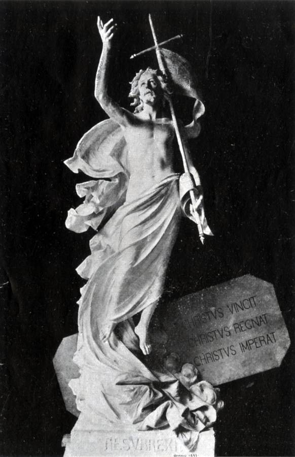 Per la Basilica di Santa Maria Immacolata di Genova, esegue per il frontone centrale i tondi di: Gesù Cristo, e San Pietro.