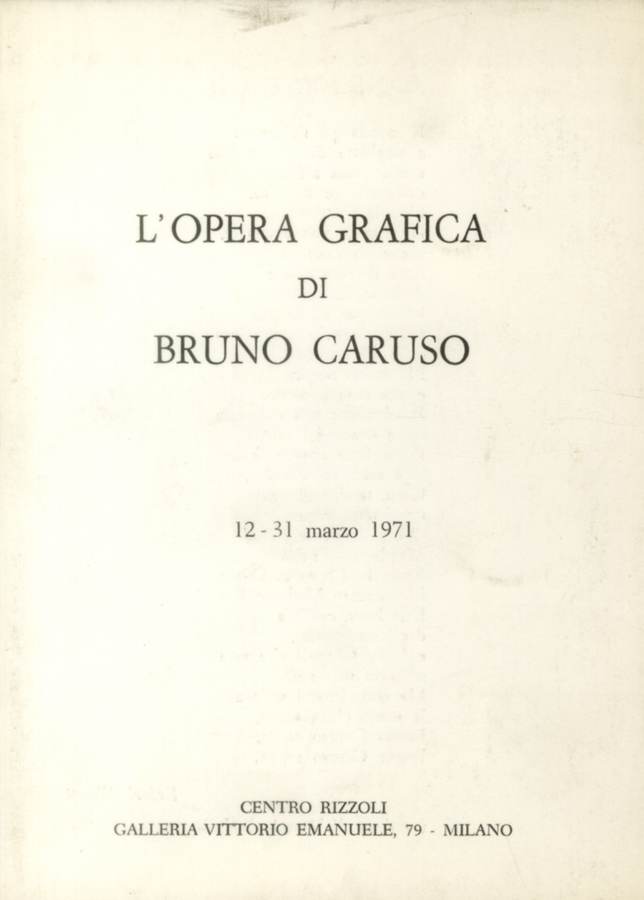 Dal 12 al 31 marzo 1971, tiene la mostra: L’opera grafica di Bruno Caruso, a Milano, presso il Centro Rizzoli.