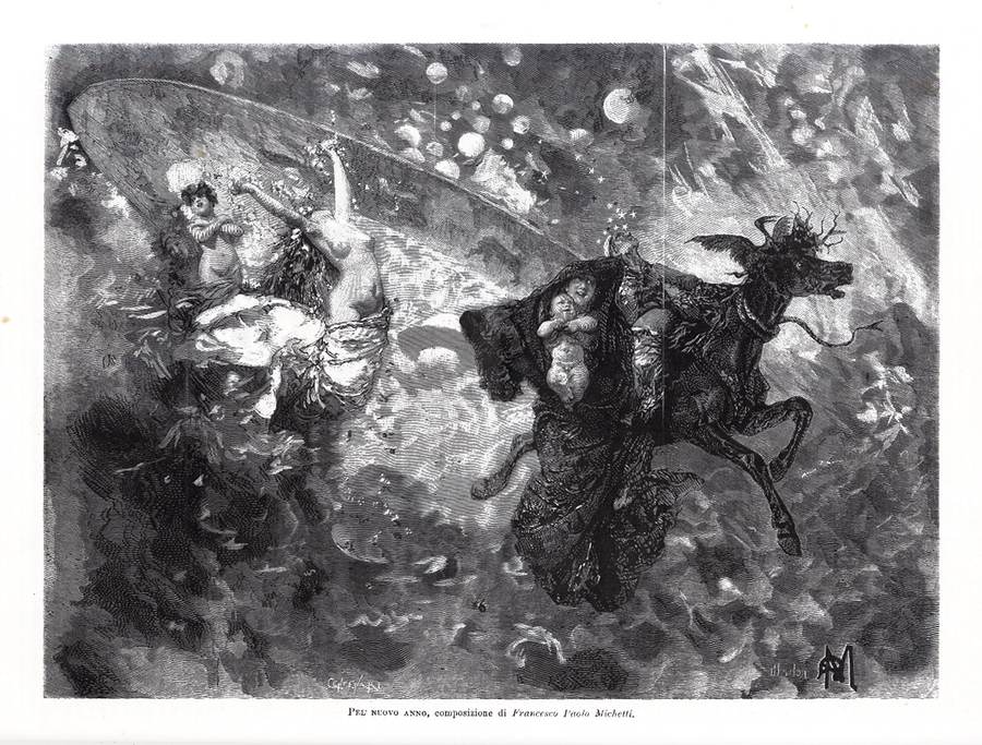 1882 - Natale e capo d'anno. Supplemento dell'Illustrazione Italiana, Milano, Treves, pp. 1, 4/5, 12/13, 20.