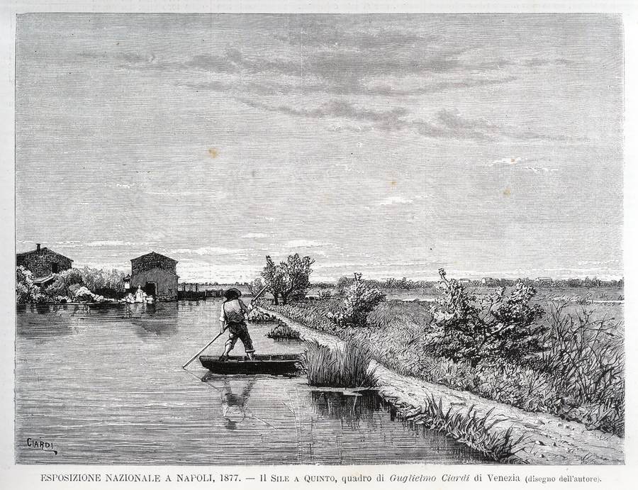 1877 - Esposizione Nazionale di Napoli - Il Sile a Quinto, quadro di Guglielmo Ciardi, (Canedi inc.), L'Illustrazione Italiana, Milano, Treves, I° semestre, n. 21, 27 maggio, pp. 329 ill., 331.