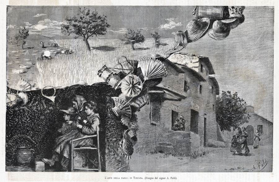 1882 - L'arte della paglia in Toscana (disegno di A. Faldi), L'Illustrazione Italiana, Milano, Treves, II° semestre, n. 31, p. 69 ill..