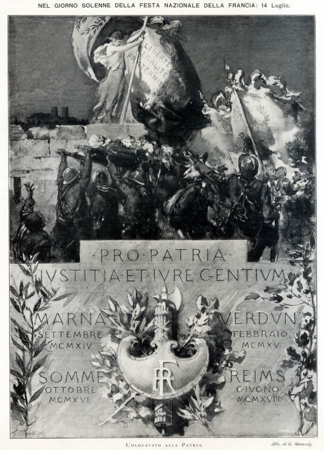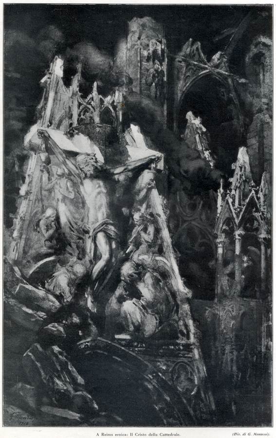1918 - L'olocausto alla Patria - A Reims eroica: l Cristo della Cattedrale, Milano, L'Illustrazione Italiana, n. 28, 14 luglio, pp. 23, 31 ill.