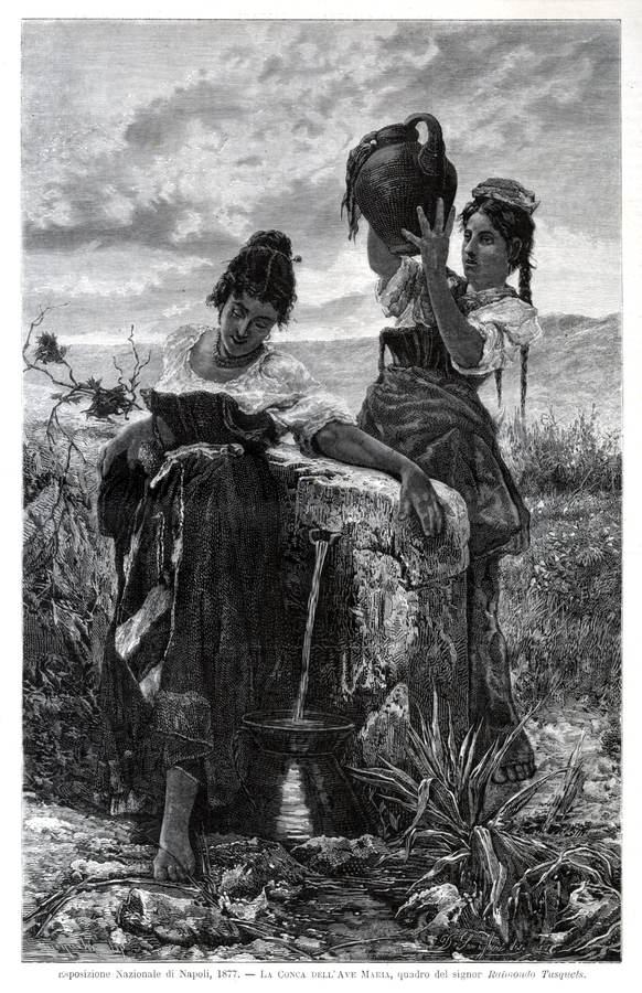 1877 - Esposizione Nazionale di Napoli, La Conca dell'Ave Maria, quadro del sig. Raimondo Tusquets (D. Semeghini dis.), L'Illustrazione Italiana, Milano, Treves, II° semestre, n. 35, 2 settembre, p. 148 ill.