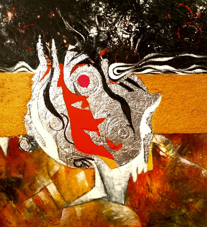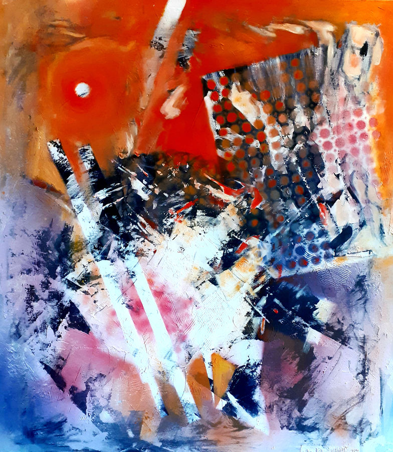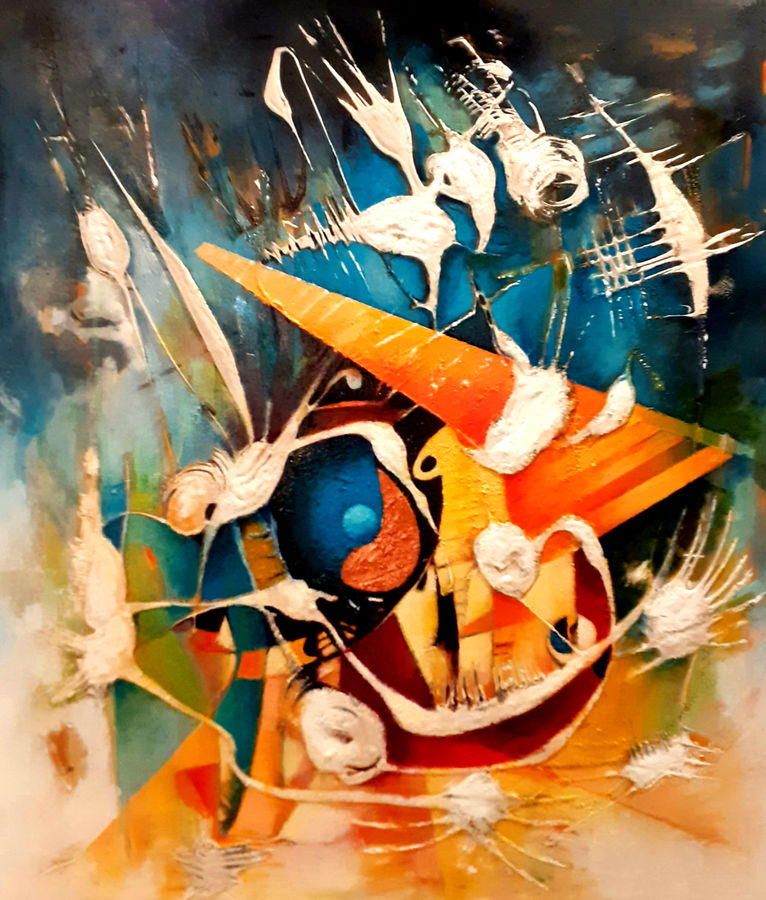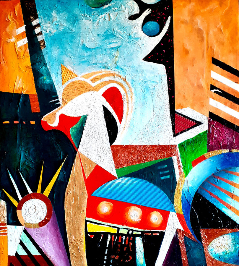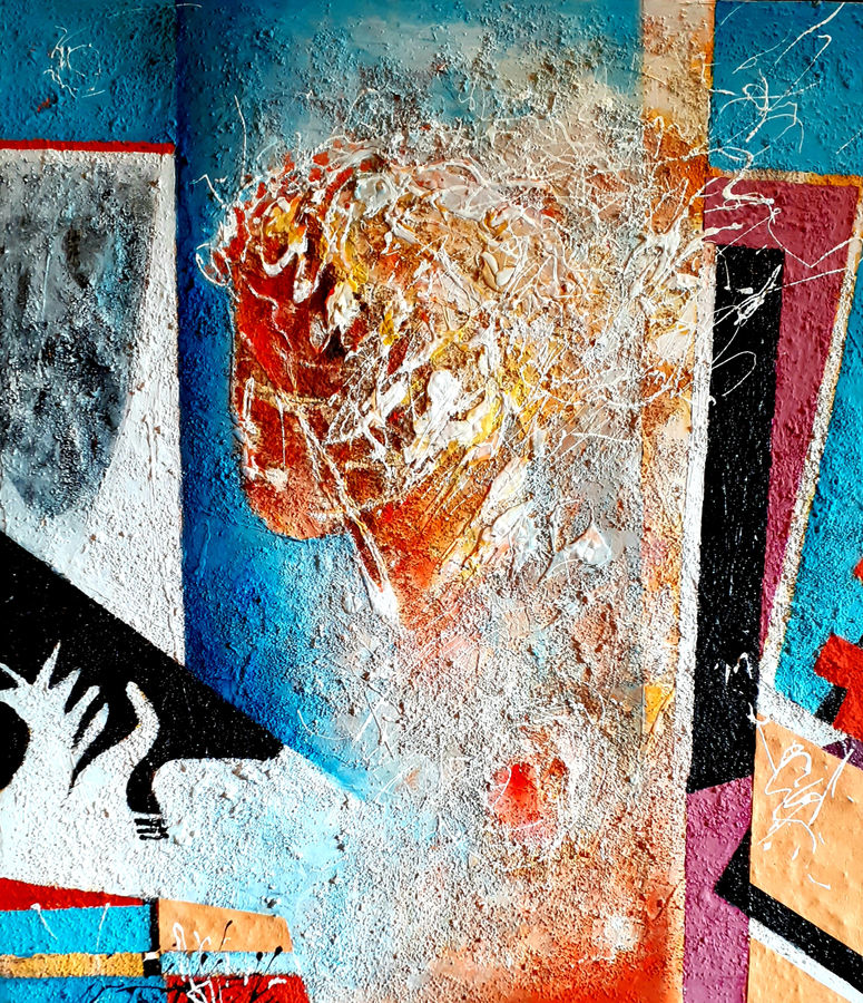 Il mito è qui inteso non come narrazione chiusa, ma come forma di resistenza del senso in un mondo disgregato,nelle sue tele, figure e simboli emergono e si dissolvono, generando una tensione continua tra realtà e invenzione, tra il visibile e l’invisibile. E in questa dialettica che nasce la forza espressiva della sua opera: una pittura che non mostra ma evoca, che non racconta ma interroga, Ogni opera si presenta come un punto d’accesso a una narrazione aperta, dove l’esperienza individuale dello spettatore diventa parte integrante del processo artistico. La sua arte è una soglia: oltre il colore, oltre la forma, oltre il tempo.