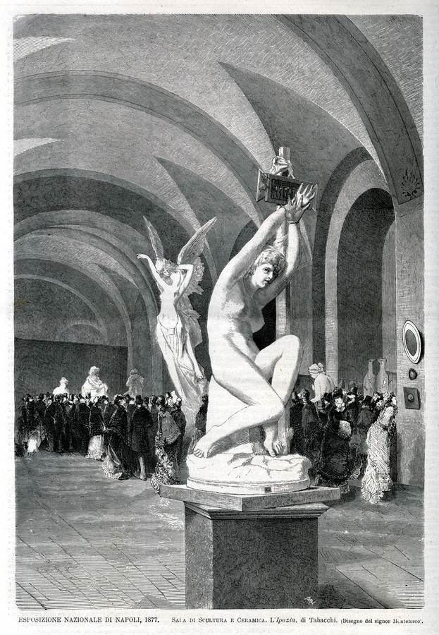 Ipazia di Tabacchi, (disegno di Montefusco, Ballarini inc.) - Esposizione Nazionale di Napoli 1877.